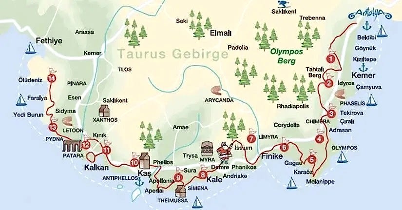 KISA OLARAK ELE ALACAK OLURSAK (Güzergahımız: Karadere, Pydynai Kalesi, Kalbantia, Dokuzgöl, Sidyma, Dodurga, Boğazköy, Eşen Çayı, Saklıkent Kanyonu, Dinke, Balamut, Karabükü, Kayadibi, Çavdır, Xantos, Letoon, Patara, Hisarönü)