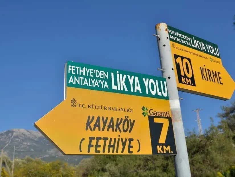 535 km'lik Likya Yolu'nun üzerindeki yol gösterici tabelalardan biri.